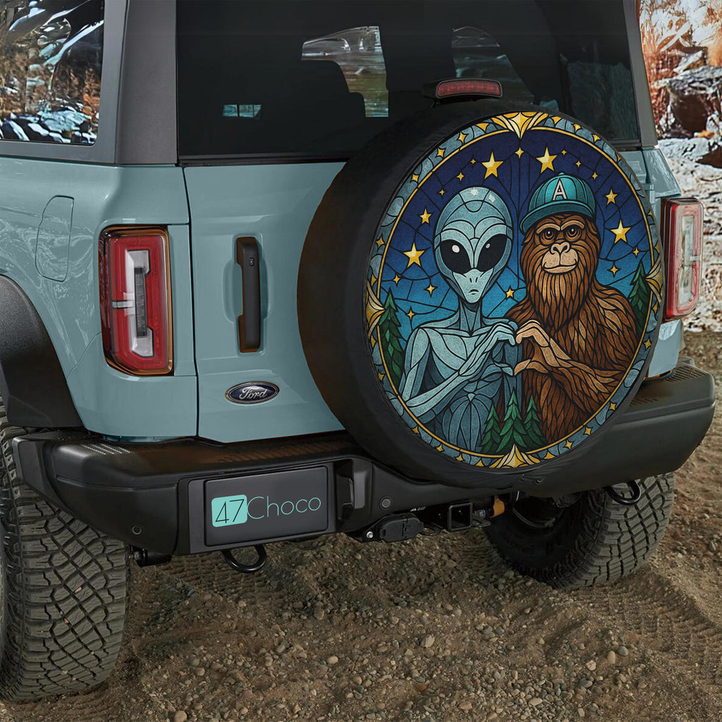 Alien And Bigfoot Stained Glass Jeep Car Spare Tire Cover
