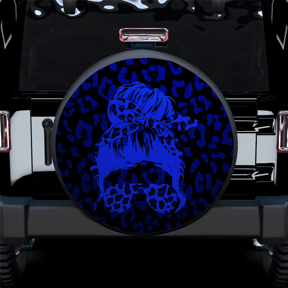 Blue Jeep Girl With Sunglasses Leopard Pattern Car Spare Tire Cover
