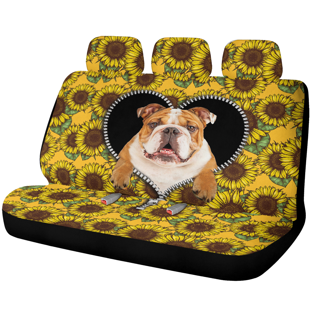 Bull Dog Zipper Sunflower Car Back Seat Covers Decor Protectors