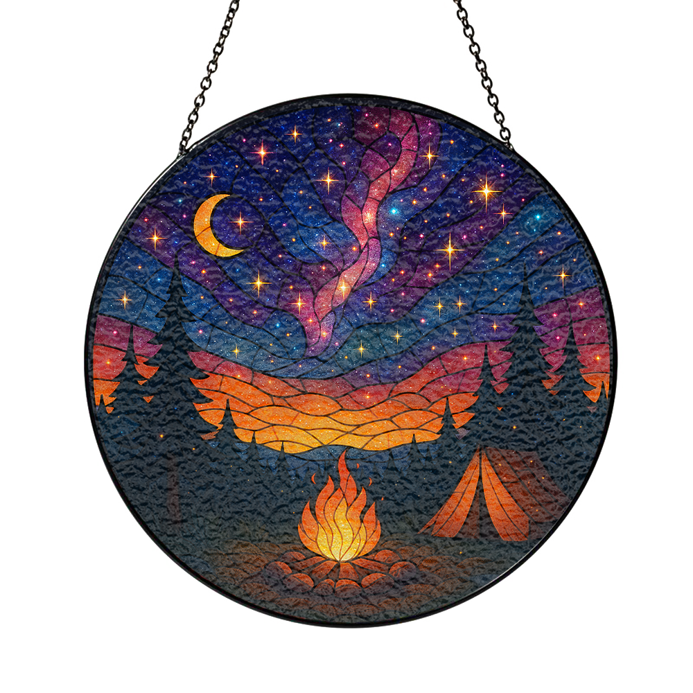 Camfire Starry Nightight Round Stained Glass Suncatcher