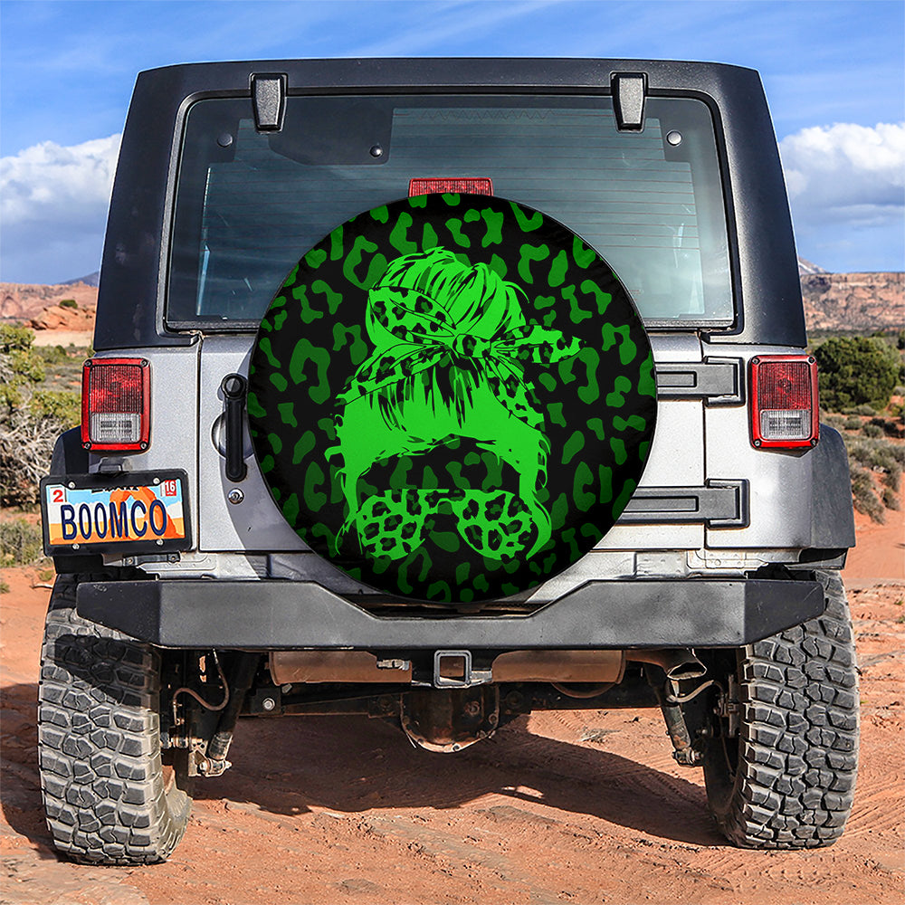 Green Jeep Girl With Sunglasses Leopard Pattern Car Spare Tire Cover