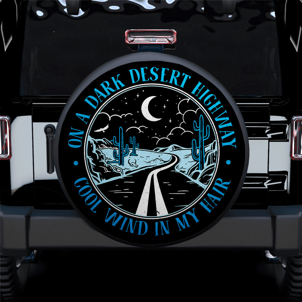 On A Dark Desert Highway Blue Jeep Car Spare Tire Cover