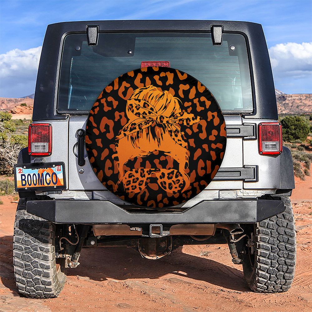 Orange Jeep Girl With Sunglasses Leopard Pattern Car Spare Tire Cover