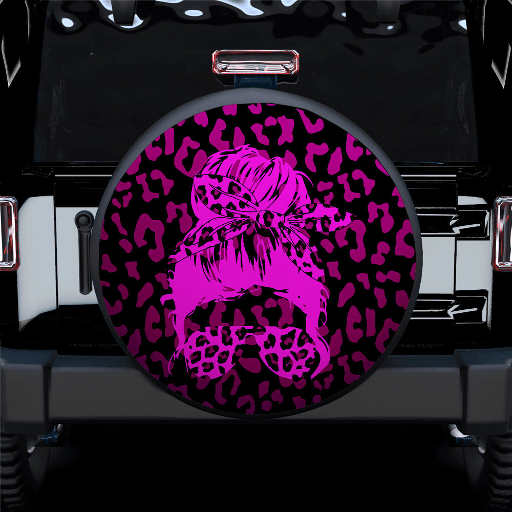 Pink Jeep Girl With Sunglasses Leopard Pattern Car Spare Tire Cover